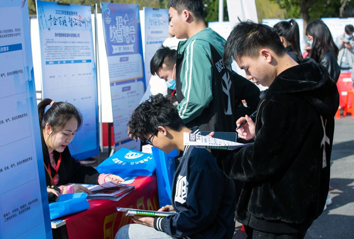 本场滁州市“千企百校行”高校毕业生春季集中招引活动有近百家企业参与,提供超3000个待遇优厚的优质岗位供毕业生们选择,旨在传达滁州识才爱才的“最美诚意”。启动仪式后,滁州市人社局精选的近百家知名企业进行现场招聘,我校600余名毕业生积极与企业方沟通洽谈,寻求心仪岗位,210名毕业生达成初步就业意向。(特约通讯员:司萍 摄影:司萍 审核:何晓冬 何永勇 编辑:陈晋)