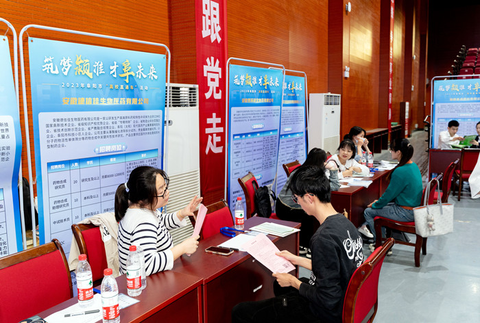 安徽柳桥农业有限公司人事经理卢玉志、安徽永生堂药业有限公司总经理周进山进行了重点企业推介。会后,同步开展企业现场招聘,41家企业共提供了650个岗位,为我校学子们提供了丰富多样的就业选择。