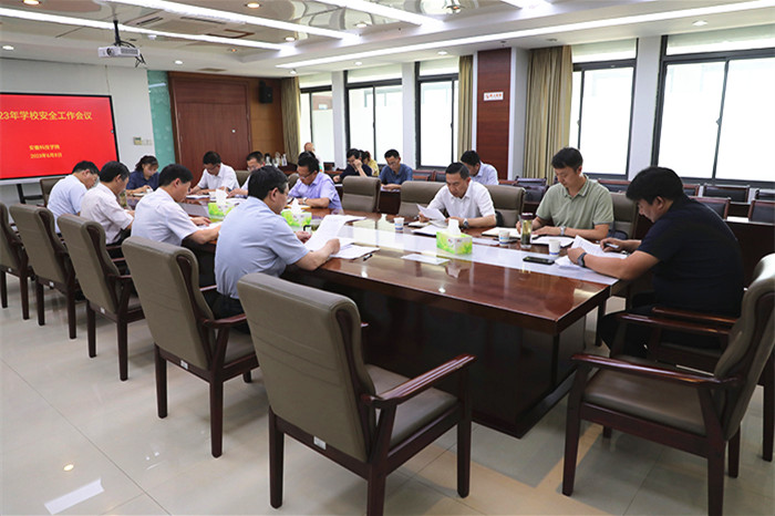 与会人员就校园安全工作形势进行研判,对我校今年“安全生产月”工作进行部署。(特约通讯员:徐建科 摄影:陈宝 审核:余德锋 姚文均 编辑:张威)