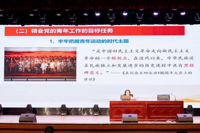 11月1日,我校2023年团干部素质能力培训班、2023-2024年“青年马克思主义培养工程”大学生骨干培训班暨第九期团校在凤阳校区大学生活动中心举行。合肥学院马克思主义学院副教授闪茜菁应邀作《新时代党的青年工作的根本遵循——学习贯彻习近平总书记关于青年工作的重要思想》的专题报告,会议由校团委书记张聪主持。
