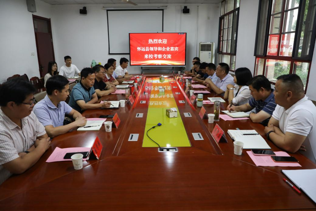 7月2日下午,怀远县人大常委会主任王五洲、怀远县副县长常春梅率县经开区、县科技局、县农业农村局、县人社局负责同志以及安徽博宠宠物用品公司董事长丁周守力、市场部经理周发展等,来校考察交流政产学研用合作事宜。校党委委员、副院长李升和,科研处处长陈丰,蚌埠市人大常委会委员、民进开云在线登陆入口_开云(中国)主委张菊,动物科学学院党委委员、副院长贺绍君,食品工程学院副院长郑海波等出席会议,会议由动物科学学院党委书记、副院长程斌主持。