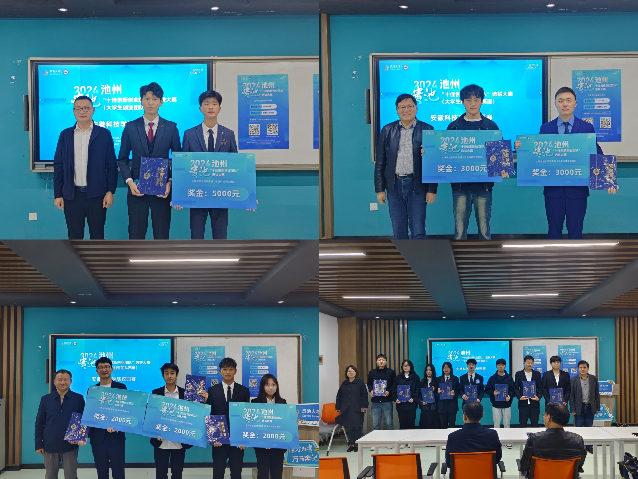 11月13日下午,池州·贵池“十佳创新创业团队”选拔大赛开云在线登陆入口_开云(中国)校园赛决赛在凤阳校区落下帷幕。此次大赛由中共池州市贵池区委人才工作领导小组主办,校赛由生命与健康科学学院承办。池州市贵池区委组织部副部长张兆军,贵池区委人才工作领导小组办公室专职副主任钱伟伟,教务处副处长、创新创业学院副院长高青海,生命与健康科学学院副院长(主持工作)钱立生等出席决赛并为参赛团队颁奖。