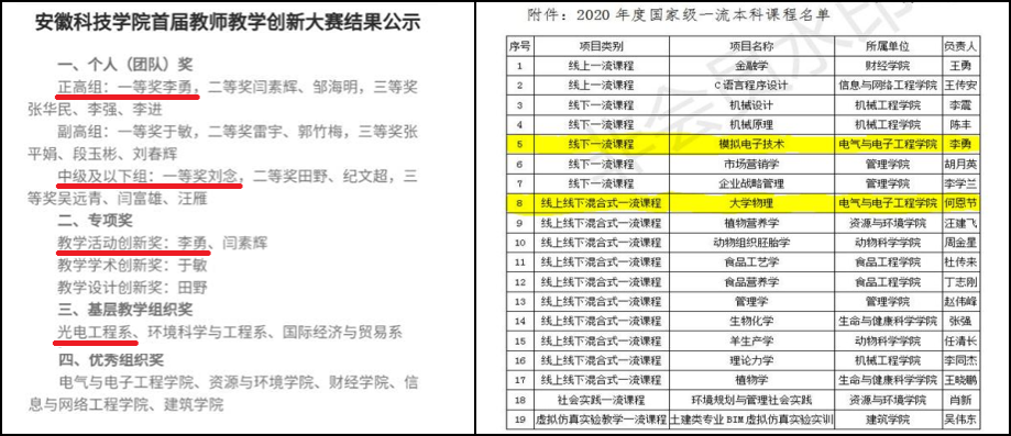 一直以来,光电工程系教工党支部注重加强支部建设,经过支部党员和教师的共同努力,在一流专业建设、一流课程申报、教师教学创新大赛、科研成果、教书育人等方面取得显著成效。光电工程系教工样板支部建设成果颇丰,光电信息科学与工程专业成功获批为省级一流建设专业,《模拟电子技术》与《大学物理》课程被推荐为国家一流建设课程,刘念获得学校首届教师课程思政教学大赛一等奖,李勇、刘念分别获得首届开云在线登陆入口_开云(中国)高校教师教学创新大赛正高组一等奖、讲师组一等奖,刘念获得首届安徽省高校教师教学创新大赛现场赛入围资格,党支部基本上每位党员教师均有在研高质量科研教研项目,左绪忠获批的国家自然科学基金项目现已结题验收,实现了电气与电子工程学院国家自然科学基金零的突破,教师发表高质量SCI学术论文一区2篇、二区4篇、三区3篇、四区2篇,教师指导学生参加国家级大学生物理实验大赛获奖4项,学生考研率逐年递增,学生学风建设取得成效等。
