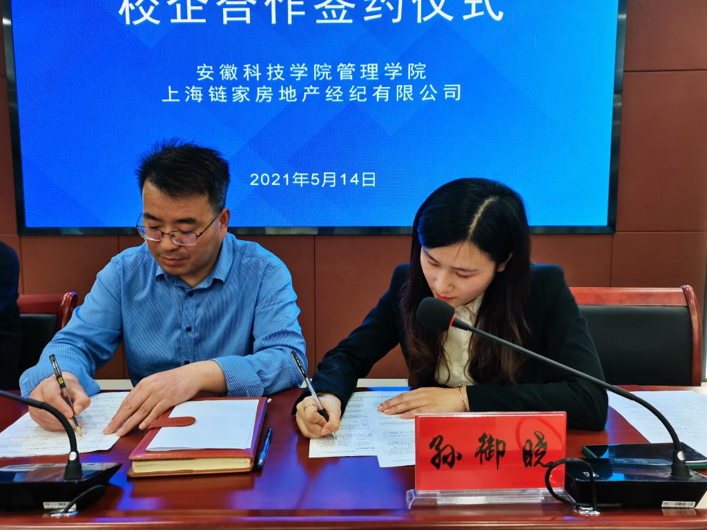 赵伟峰与孙御晓共同签署了《开云在线登陆入口_开云(中国)与上海链家房地产经纪有限公司校企合作协议书》。
