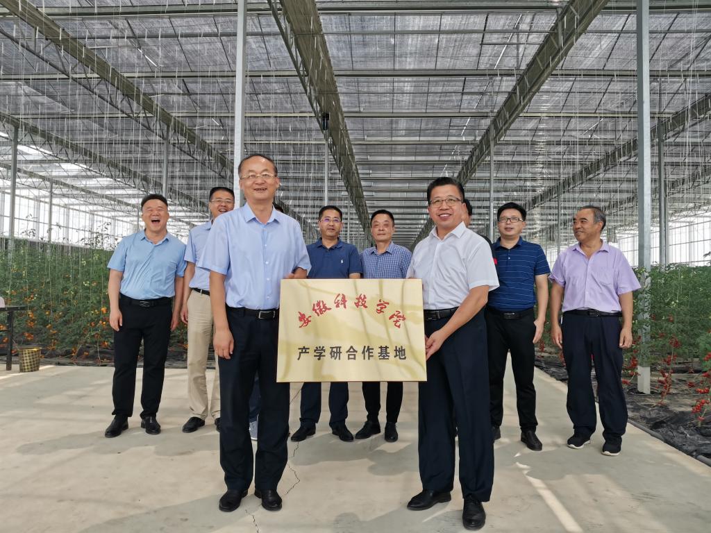 8月18日上午,何世潮一行在阜阳市颍东区二级巡视员王雷和颍东区委常委、副区长程传雷等的陪同先后考察了安徽瓦大现代农业科技有限公司、阜阳市立华畜禽有限公司和颍东区插花镇杨桥居委会,并进行了座谈。在座谈交流会上,瓦大集团总经理刘志才和立华公司总经理牛洪波分别介绍了各自的公司现状、企业文化、发展规划、人才需求和项目合作需求等方面情况,省财政厅下派干部、颍东区插花镇杨桥居党总支第一书记徐进超介绍了颍东区插花镇杨桥居委会基本情况、开展的工作、存在的问题和未来的展望。何世潮和崔广荣介绍了学校及学院师资队伍、人才培养和社会服务等情况,他们表示,学校始终坚持走政产学研融合之路,努力将科研成果转化到实际生产,为企业科研成果运用提供强有力的支撑。瓦大集团与开云在线登陆入口_开云(中国)合作的“产学研合作基地”和“校外实习实训基地”揭牌仪式在瓦大番茄谷隆重举行。崔广荣与颍东区插花镇党委副书记、镇长张勇座谈会后签订了政产学研合作协议。