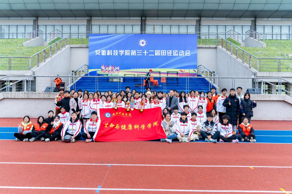 运动会上,生命与健康科学学院的运动健儿们顽强拼搏、竭尽全力,取得了耀眼的成绩。最终学院荣获女子甲组团体总分第一名、男子甲组团体总分第三名、学生团体甲组总分第三名的优异成绩;学院均斩获女子铅球、跳远、4×100米接力赛、三级跳远、400米,男子标枪,教职工团体女子对地反弹乒乓球项目第一名,各个项目都有我院运动员拼搏的身影,并取得多项佳绩。本届运动会上,生命与健康科学学院共有62名学生运动员、20名教职工参加比赛,学生组织全体工作人员及各班级同学均负责后勤保障工作。
