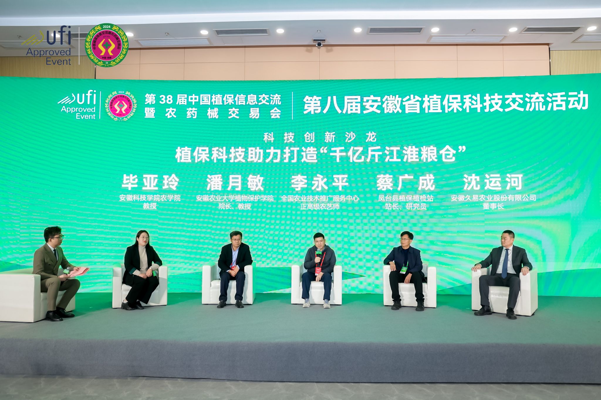 为创新交流模式,更好地服务安徽植保事业,大会邀请了全国农业技术推广服务中心李永平正高级农艺师,安徽农业大学植物保护学院院长潘月敏教授,我校农学院毕亚玲教授,凤台县植保植检站站长蔡广成研究员和安徽久易农业股份有限公司沈运河董事长等专家学者共同开展了植保科技助力打造“千亿斤江淮粮仓”科技创新沙龙。毕亚玲及各位专家结合各自的研究专长,积极发声交流,共同探讨挖掘植保科技新质生产力,旨在为植保科技助力打造“千亿斤江淮粮仓”招才引智。