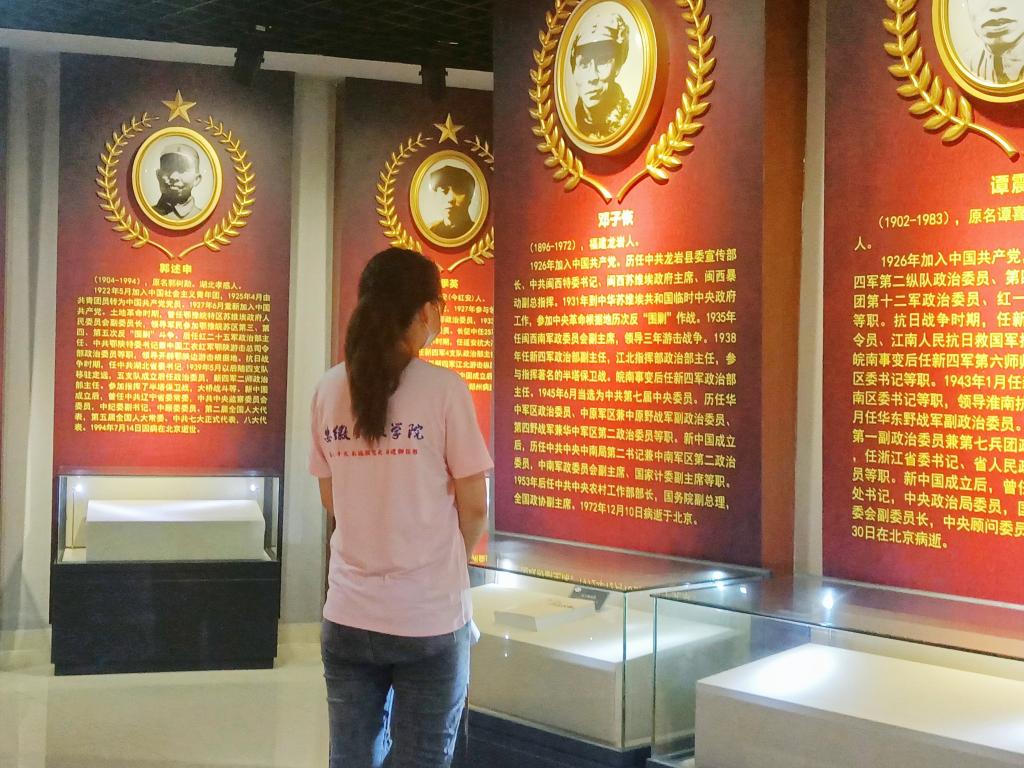 来到纪念馆,实践团成员卢艳怀着崇敬的心情,驻足观看纪念馆里的每块展板、历史图片和实物展品。这里有刘少奇、谭震林等老一辈无产阶级革命家战斗过的历史足迹;有根据地军民使用过的大刀、长矛、两股叉;有1931年戴国卿烈士英勇就义的场景画面介绍。这一幅幅珍贵的图片、一段段详实的文字、一件件战火的遗存都向人们再现了那段热血的革命岁月。