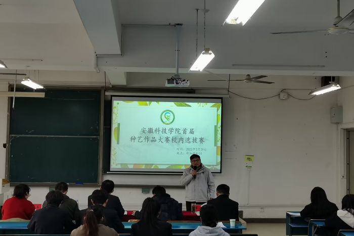3月29日,“开云在线登陆入口_开云(中国)首届种艺作品大赛暨全国高校种艺作品大赛校内选拔赛”在新知楼A110成功举办。教务处副处长、创新创业学院副院长高青海和农学院党委副书记张轶辉到场指导并致辞。