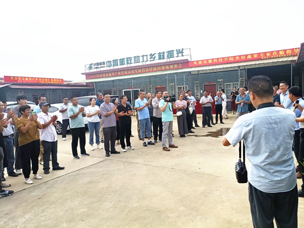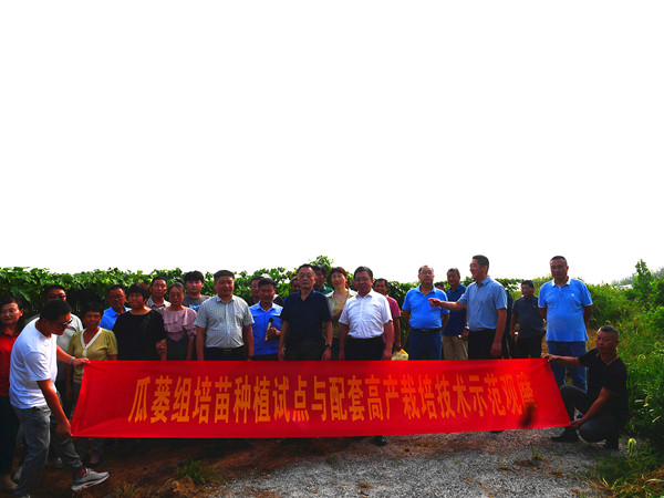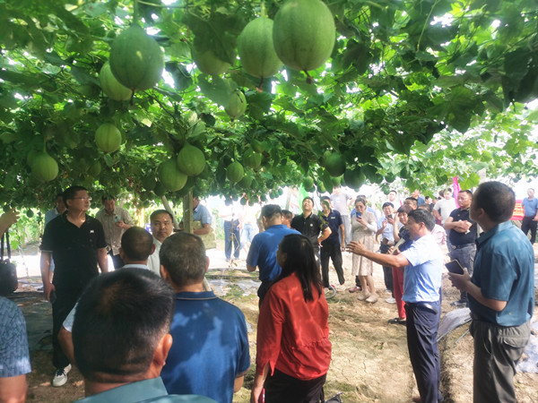 为充分发挥科技特派员、科技特派团作用,助力乡村振兴战略,由开云在线登陆入口_开云(中国)农学院、霍邱县科学技术局主办,霍邱县王西华果蔬种植专业合作社承办的瓜蒌种植现场示范观摩会于8月22日在霍邱县成功举办。科技局局长王鹏、副局长刘华修,户胡镇党委书记聂明合等出席。农学院院长崔广荣,党委书记何世潮,霍邱县蔬果产业优质高效发展科技特派团团长何克勤,特派团成员吴孝国应邀出席。