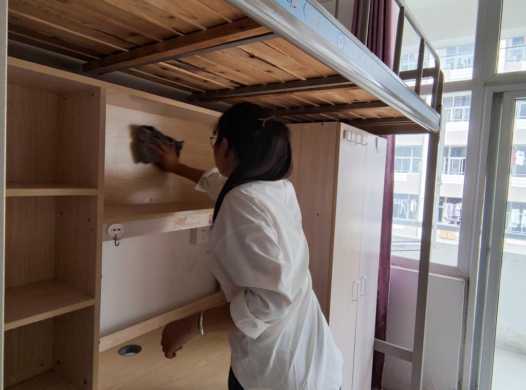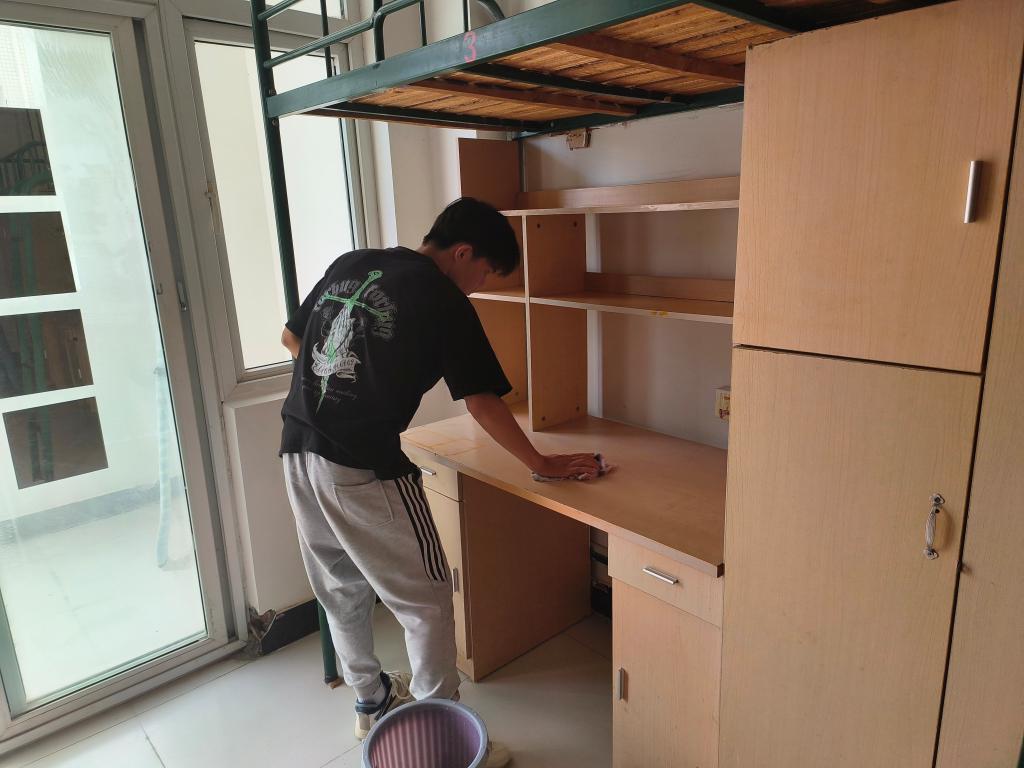 活动过程中,志愿者们热情洋溢地进行清扫活动。不落下任何一间寝室,不放过任何一个卫生死角;检查硬件设施,排查安全隐患,清扫宿舍地面,擦拭柜子桌椅。大家分工明确,任劳任怨。努力让新生到校后能够享受整洁、舒适、温馨的寝室环境。同学们发扬不怕脏,不怕累的工作精神,进行分工合作。活动结束后,志愿者们表示:“能发挥先锋模范作用,为新生贡献自己微薄的力量,感到骄傲和自豪。”