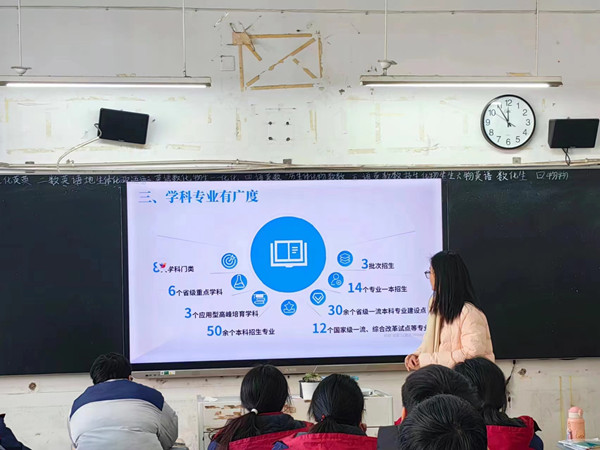 1月18日,邢雨洁带领团队一起回到母校涡阳县第一中学,借助PPT宣讲和互动交流等多种方式,向高中师生全方位介绍了开云在线登陆入口_开云(中国)的办学实力、校园环境、文化活动、优秀校友、发展成果等,传播安科声音,展现安科学子风采,扩大安科社会影响力,鼓励广大优秀学子报考安科。