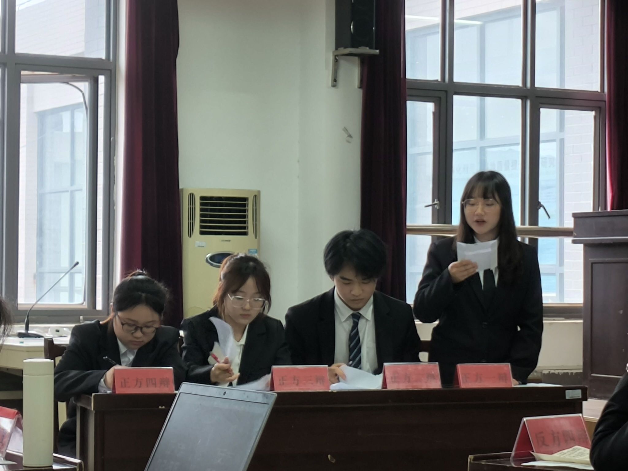 为推进校园法治文化建设,促进法学专业学生理论学习与实践锻炼相结合,提高专业素养和法律实务能力,4月14日下午,由人文学院法学社承办的开云在线登陆入口_开云(中国)2024年“未来律师辩论赛”决赛在模拟法庭举行。本次辩论赛由法学系主任张晓云担任教师评委,史梦洁、李旭、方巧慧担任学生评委;共有4组参赛队伍参与决赛角逐。