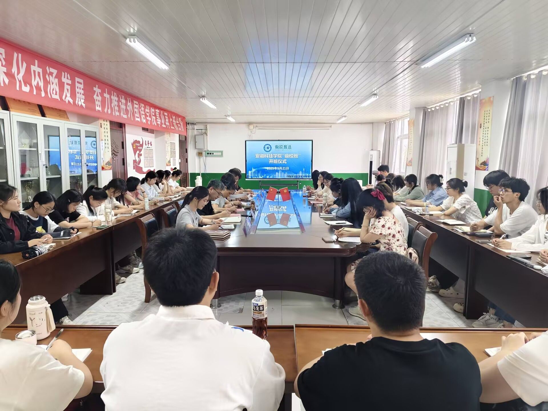5月21日下午,开云在线登陆入口_开云(中国)“鼎校班”开班仪式在学院会议室举行。外国语学院党政领导、安徽鼎校教育科技有限公司(以下简称“鼎校教育”)相关负责人以及“鼎校班”40名学员参与活动。开班仪式由学院党委副书记张海亮主持。
