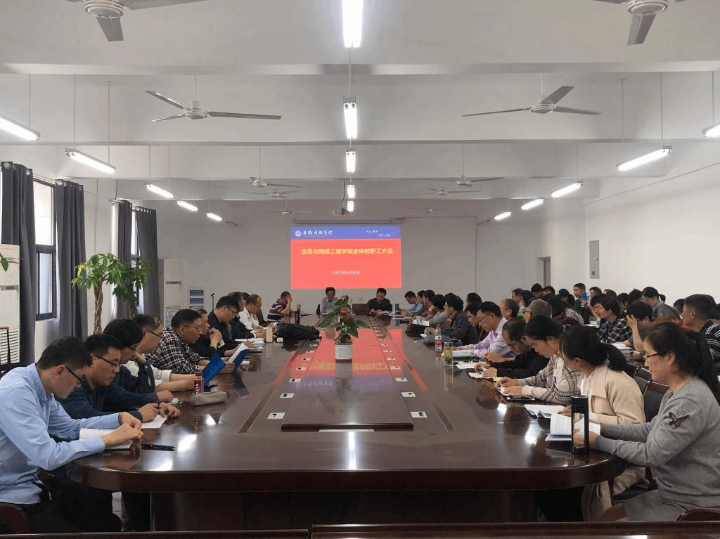 为进一步落实中央巡视整改任务,扎实做好学校省委巡视反馈意见整改情况的学习宣传工作,5月8日下午,信息与网络工程学院在尚行楼B418召开全体教职工大会。学院院长余宏杰,正处级组织员周向群,党委副书记韦乃学,副院长何恩节,副院长曹浩及全体教职工参加会议,会议由余宏杰主持。