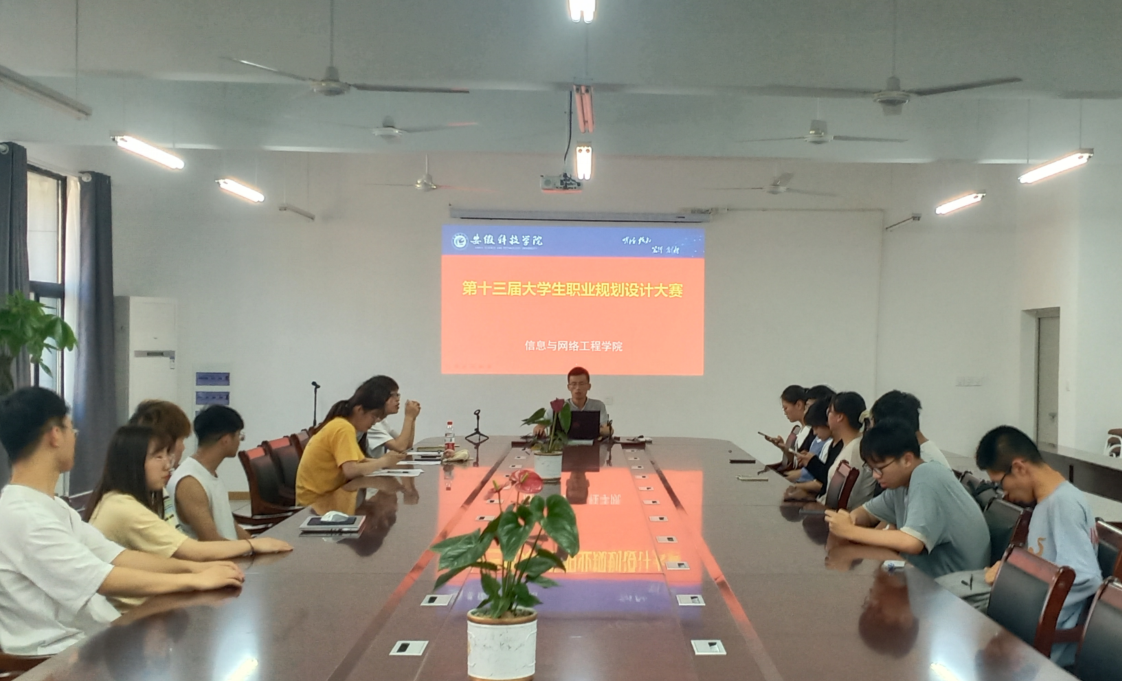 为进一步提升学生职业生涯规划能力,帮助学生树立正确的就业观、成才观、价值观,激发学生职业规划意识,增强学生综合素质,信息与网络工程学院于6月5日举办大学生职业规划设计大赛。信息与网络工程学院专职辅导员陈凯、学生会权益维护部部长徐梦瑶、实践拓展部部长杨红玲、学习发展部部长张廷雨担任评委,比赛由陈凯主持。