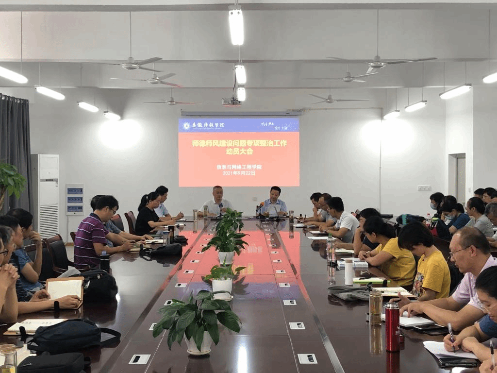为深入推进师德师风建设工作,9月22日下午,信息与网络工程学院于尚行楼B418会议室召开师德师风建设问题专项整治工作动员大会,学院全体教职工参加会议,会议由学院党委书记王振其主持。