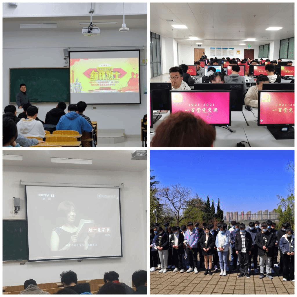 线下以形式多样的团日活动展开,观看《见证初心和使命的“十一书”》,重温11位革命先烈的感人故事,感悟初心使命,坚定理想信念,弘扬革命精神,凝聚迈进新征程、奋进新时代的强大力量;通过一百堂党史课,引导广大学生党员厚植爱国情怀、坚定理想信念,承担责任使命,努力争当先锋,为实现中华民族伟大复兴的中国梦贡献青春力量;召开缅怀英烈主题班会,追忆革命先烈,培育和弘扬中国传统革命精神教育,继承革命优良传统,让红色基因代代相传!组织学生到蚌埠市烈士陵园进行祭扫,向先烈们鞠躬默哀、献花,表达深切悼念和崇高敬意,缅怀烈士不朽功勋,传承弘扬英烈精神。