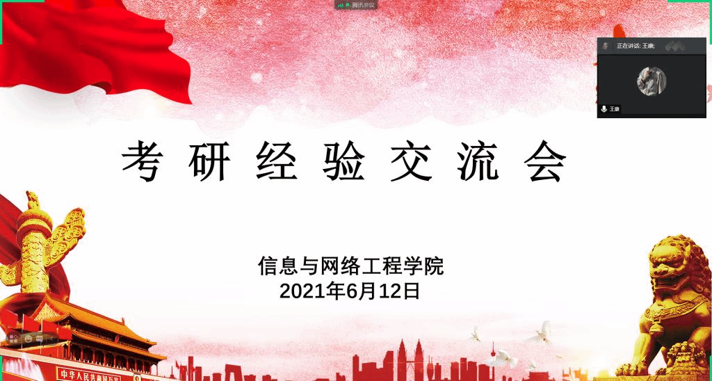 为引导学院学生树立正确考研目标,掌握相关考研技巧,了解更多考研信息,6月12日,信息与网络工程学院通过腾讯会议开展线上考研经验交流会。学院专职辅导员陈凯,六位2017级优秀考研学子刘成健、乔明磊、刘奇、朱骏华、唐成伟、王康出席本次交流会,2018级各班级拟考研同学参加了本次会议,会议由陈凯主持。