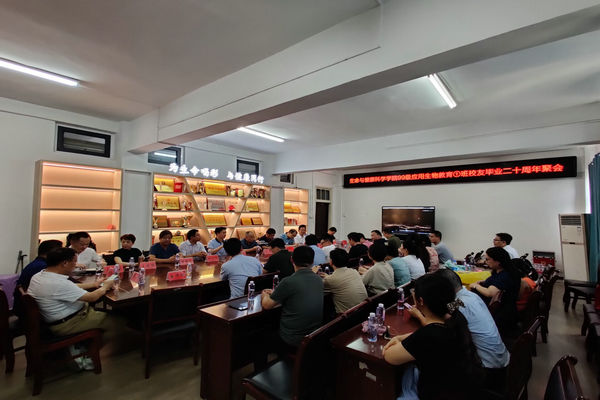 生命与健康科学学院副院长(主持工作)孙玉军代表学院对校友们返校联谊表示热烈欢迎,并详细介绍了学院近年来的发展情况和取得的成绩,希望校友们加强与母校的联系,关注母校的发展,支持母校的工作,在人才培养、学科建设、专业建设、教学科研和社会服务等方面建言献策,共谋发展大计。詹学文对校友们心系母校、荣归母校表示热烈欢迎,同时深情回顾了自己在生命与健康科学学院的工作经历,并就学校近年来凝聚校友力量实施人才强校战略助力学校事业发展等进行了介绍。何晓冬对校友们在毕业20周年之际相约凤阳、相聚母校表示热烈欢迎,并重点介绍了校友工作开展情况,同时表示校友永远是母校闪亮的名片、母校永远是校友们坚实的后盾,祝愿广大校友在事业发展和人生道路上大有作为。