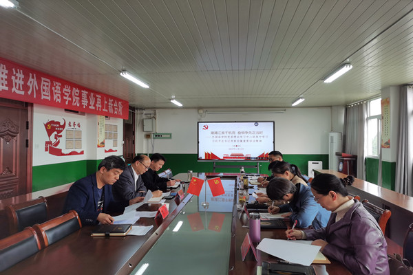 11月 13 日下午,校党委委员、副院长王孝义在校党委教师工作部部长、人事处处长詹学文,工资与社保科科长李沙陪同下莅临外国语学院指导学院党委理论学习中心组集中学习研讨会,会议由外国语学院党委书记蔡为青主持。