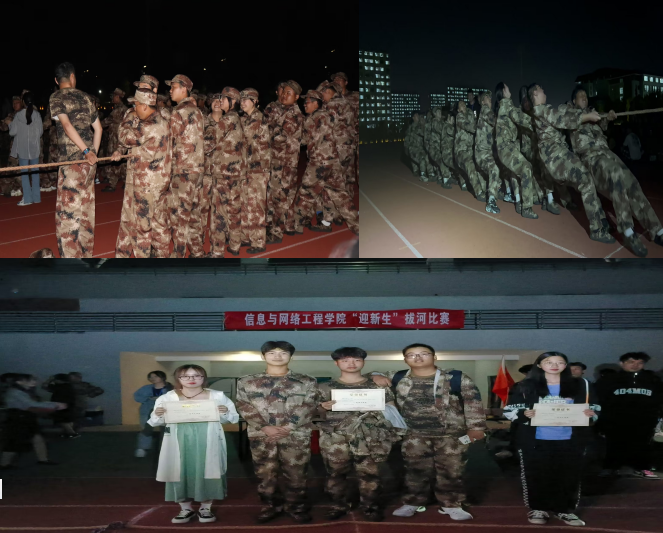 为促进2022级新生之间的交流,丰富学生的课余文化生活。9月24日晚,信息与网络工程学院在龙湖风雨操场举办第六届“新生杯”拔河比赛,本次比赛由网络工程211班王艺陶主持,2022级全体新生参与。