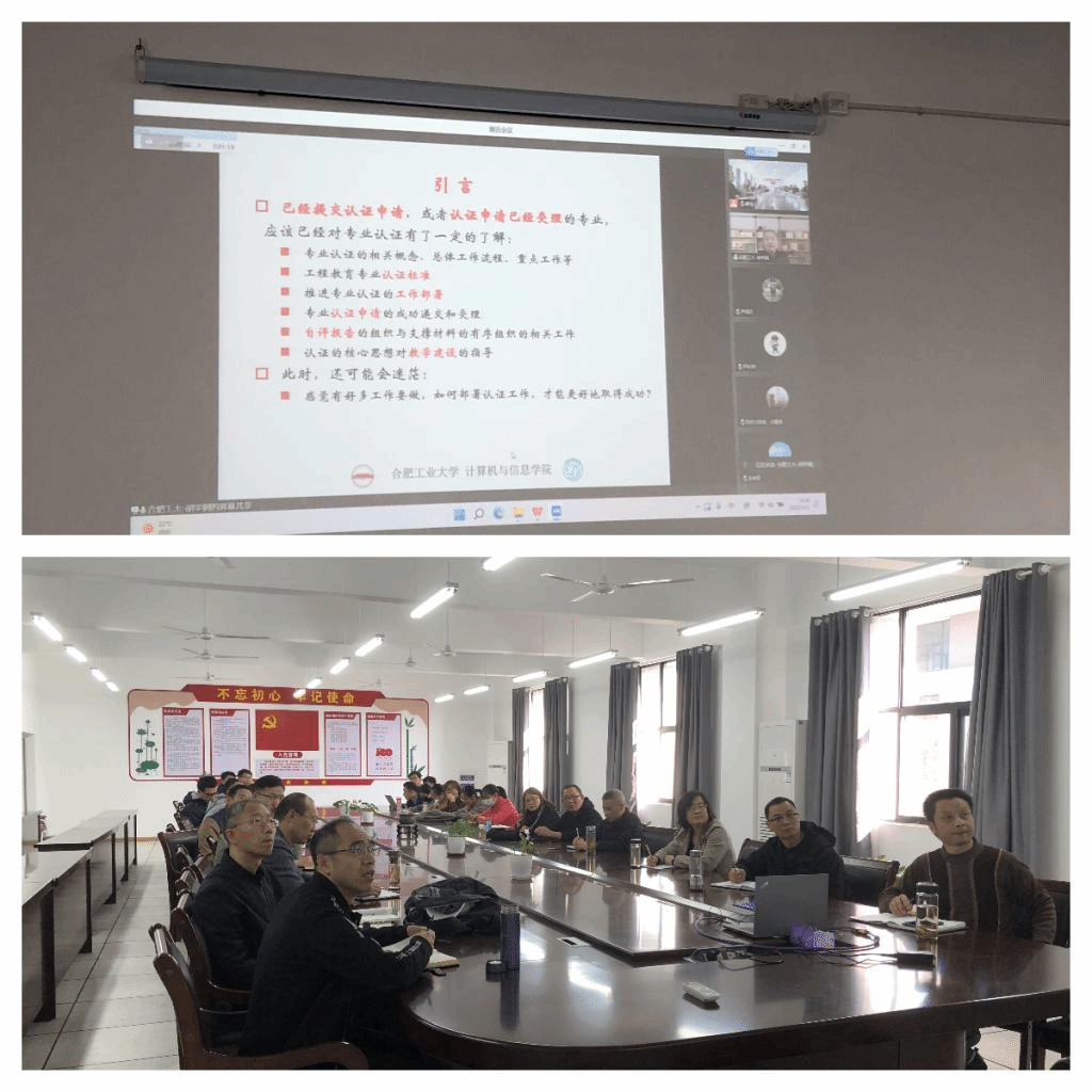 进一步推进计算机科学与技术专业专业认证工作,112日下午,信息与网络工程学院在尚行楼B418召开专业认证报告会会议邀请安徽省高校计算机教育研究会理事长、合肥工业大学胡学钢教授“成功推进专业认证必须要做好的工作”的报告信息与网络工程学院全体教师参加了会议,会议由院长余宏杰主持。