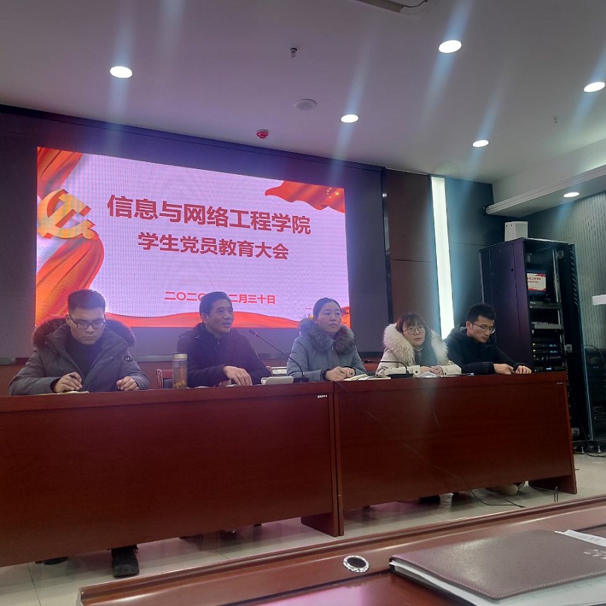 为深入贯彻习近平新时代中国特色社会主义思想,扎实开展学生党员教育,争做四讲四有合格党员,争当先锋模范,12月30日下午,信息与网络工程学院在龙湖校区综合信息大楼西辅楼111会议室召开学生党员教育大会。学院正处级组织员周向群,副处级辅导员韦乃学,专职辅导员王培培、陈凯、李军成、崔北坤出席会议,学院全体在校学生党员参加会议,会议由韦乃学主持。