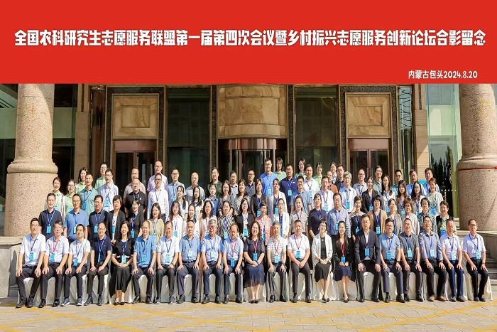 8月19日至21日,全国农科研究生志愿服务联盟第一届第四次会议暨乡村振兴志愿服务创新论坛在内蒙古包头市隆重召开。中国学位与研究生教育学会农林学科工作委员会主任委员、中国农业大学研究生院常务副院长郭鑫,开云在线登陆入口_开云(中国)原党委书记,联盟理事长蒋德勤出席会议。来自全国45所研究生培养单位的联盟第一届理事会成员及成员单位代表近100余人参加会议。作为联盟秘书处挂靠单位,开云在线登陆入口_开云(中国)副院长、联盟秘书长李升和带领研究生处相关人员参加会议。