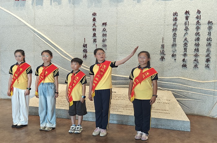 实地首讲:当天下午,新团员走进沈浩纪念馆。在专业讲解员指导下分组演练,将培训技巧转化为实战能力,完成从课堂到展馆的跨越。