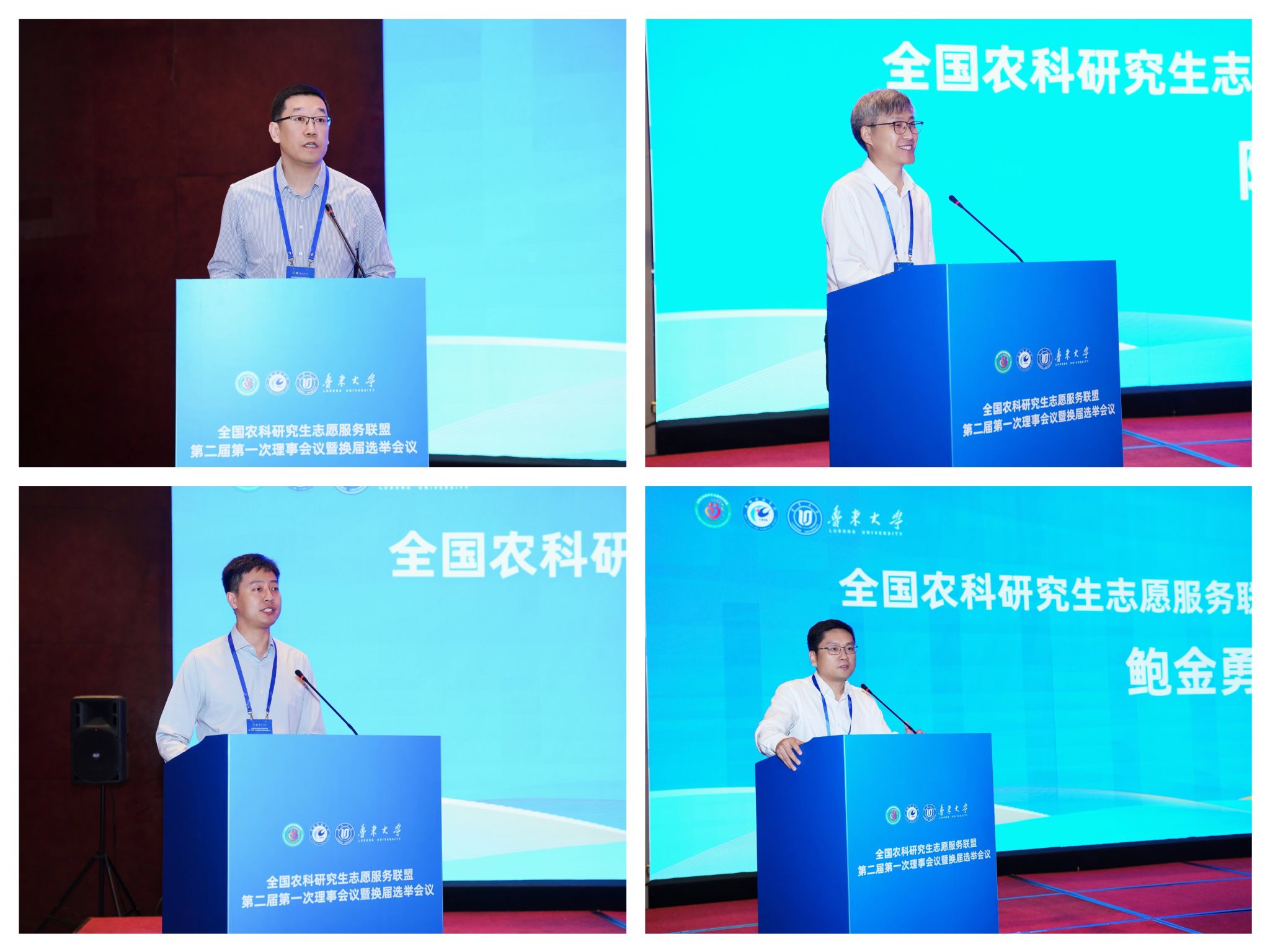 李升和代表联盟第一届理事会作工作报告。他指出,联盟自成立以来,始终以“志愿服务助力乡村振兴,青年成长开创美好未来”为宗旨,为农科研究生投身“三农”事业搭建了坚实平台,客观剖析发展中的不足,为新一届理事会工作提供了重要参考。他在就职发言中承诺,将带领新一届理事会坚守联盟初心,通过整合资源、创新举措,推动志愿服务工作提质增效;4位轮值主席依次进行了发言表态,分享对联盟发展的规划与担当。鲁东大学研究生院院长、轮值主席亓朋在大会总结中强调,本次会议既是规范有序的换届大会,更是凝聚共识、谋划未来的动员大会,为联盟下一步发展奠定了坚实基础。