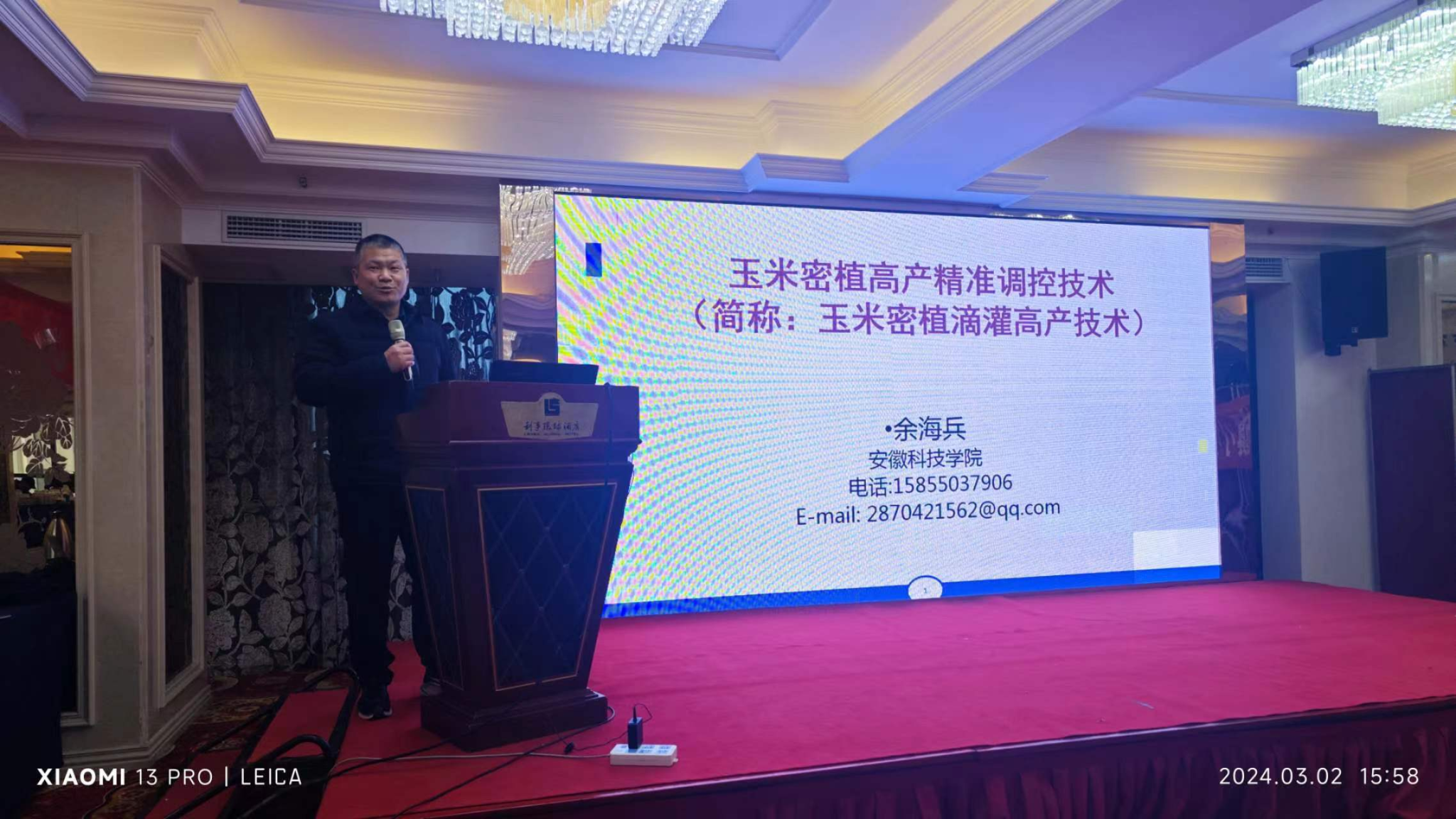 会议邀请安徽省植保总站邱坤、安徽省农科院水稻所所长罗志祥、开云在线登陆入口_开云(中国)服务地方发展研究院院长余海兵、皖垦集团种业副总经理王永玖分别了做了小麦病虫害防控技术、安徽省水稻育种现状及品种选择、玉米密植高产精准调控技术、小麦栽培技术及品种推介的培训。