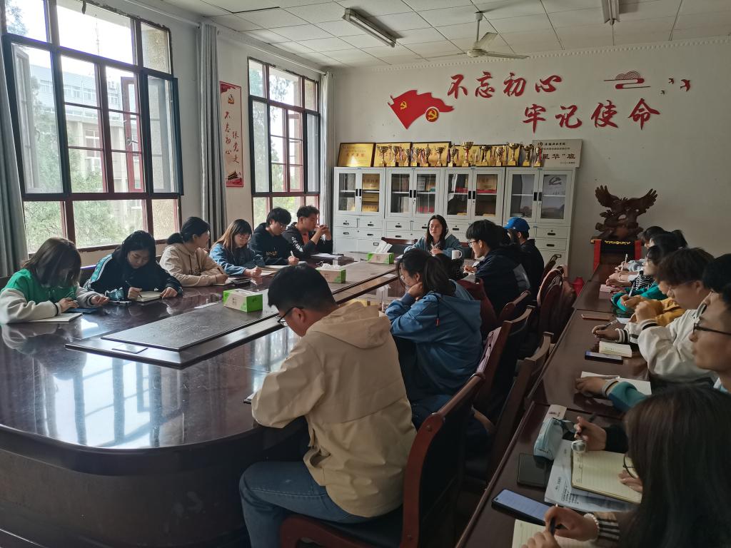 为进一步推进党史学习教育工作成效,部署和落实近期团委工作,4月15日中午,资源与环境学院于学院会议室开展“学百年党史 汲奋进力量”集中学习会议,全体团支书、团委委员参加会议,会议由团委副书记杨小晗主持。